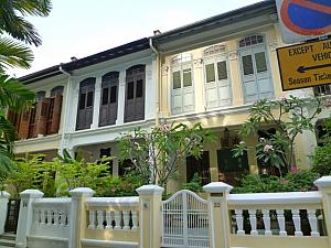 オーチャード・ロードの近くにある、プラナカン建築が並ぶ通り。細長い鎧戸や唐草模様の柱頭に彩られた、華やかなパステルカラーの家々が並んでいます。玄関部分は重厚なスイングドアが付いた中国風にしつらえてある家が多く、西洋建築と東洋建築の折衷様式の特色がよく出ています。改装して2階の窓を大きくしている家々もあり、伝統建築を現代風に住みこなしている工夫も見られます。オーチャード・ロードでのショッピングの合間に、優美な暮らしを愛したプラナカンたちに思いをはせながら、散策してみてください。