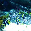 パノラマ水槽を見終えたら、再び入口の方向に向かって、今まで歩いてきた道と逆サイドの順路を歩いていきます。オープン・オーシャンの後は、アラビア海、紅海、東アフリカの海の生き物たちを展示するエリアが続いています。澄んだ暖かい海水の中東の海には美しいサンゴ礁が生育し、世界でも最大級の魚たちの楽園があるそうです。ご存じでしたか? アラビア海の水槽にはハタタテダイ、アラビアン・エンジェル・フィッシュなどが、紅海の水槽にはゴールデンバタフライフィッシュ、キンギョハナダイなどが珊瑚のまわりを泳いでおり、華やかです。東アフリカのエリアには、淡水魚のアフリカカワスズメなどがいます。