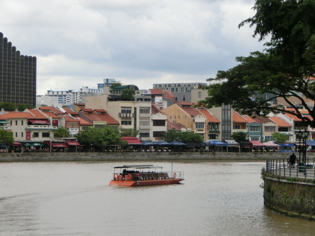 出発するとまず見えてくるのがクラークキー!クラークキーは皆さんも「バーやクラブなどが建ち並ぶ夜の街」というイメージを持っている方が多いのではないでしょうか?週末の夜になると観光客だけでなく地元の若者や家族連れなども集まって、かなり賑やかな場所となります。夜と違って昼は人通りの少ない静かで落ち着いた雰囲気になります。また昔から漁村の倉庫街として発展してきましたが、倉庫街の街並みをそのまま残しつつ、再開発されたため、カラフルな造りのお店やレストラン、ワインバーやクラブなどが建ち並び、シンガポールの代表的なアミューズメントスポットのひとつとなっています。