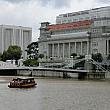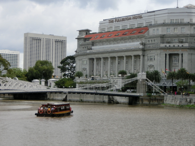 まず見えてくるのが川沿いに面したたくさんのレストランやバー、その後には高層ビルが建ち並ぶビジネスエリアとなります。空に向かってそびえたつ新しいビル群と、昔ながらの小さなレストランが混在する新旧の文化がまざりあった場所。また向かって左側には「アジア文明博物館」も見ることができ、1つめの橋をくぐれば、右手には有名な「フラトンホテル」も見えます。