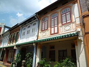 チャイナタウンに近いエリアにある、瀟洒なプラナカン建築が並ぶ通り。一階部分を店舗、二階部分を住居にする間口の狭い建築物は、もともと中国南部のもの。プラナカンたちはそこに西洋建築の要素を取り入れ、装飾に飛んだ華麗な住まいを作り上げています。この通りのプラナカン建築は、半円アーチを描くよろい窓や壁を彩るレリーフなど、曲線的で優しい印象のデザインのものが多いのが特徴。玄関や一階の窓の上を飾る透かし彫りも凝ったものが多く、視線が釘付けになります。プラナカンたちの優美な好みを実感できる通りです。