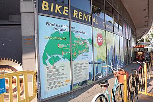 シンガポール各地にあるレンタサイクルのお店のマリーナ・ベイ店。1時間からレンタルできるので周辺のお手軽散策に最適。少し足を延ばしてガーデン・バイ・ザ・ベイまで行けます!家族用、子供用など用途に合わせて自転車が選べます。レンタル料金は自転車の種類で異なりますが、一般の自転車であれば1時間10ドルから借りられます!
