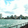最寄りのフェリー乗り場はマックマホンズ・ポイント(McMahons Point)。サーキュラー・キーから2つ目、所要時間はフェリーでわずか8分。ホテルはフェリー乗り場を降りたら右に曲がってすぐのところにあります。緑に囲まれた17階建ての高いビルです。マックマホンズ・ポイントの埠頭からも清々しいシティの風景が望めます。