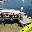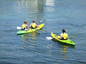 マンリー・ワーフのすぐ脇にあるレンタル・カヤック。一人用(シングル)と二人用(ダブル)の2種類があります。パドルを漕ぐ力を左右対称にすることだけを心がければ簡単にまっすぐ進んで行くので、初心者向けのウォーター・アクティビティと言えるでしょう。夏場は3時間のカヤック・ツアーを毎日催行しています(冬は日曜のみ)。ただ、1年を通してお日様の照り返しがかなりきついので、日焼け対策だけはしっかりして行くことをおススメします。濡れたら困るものや貴重品は預けられるのでご安心を。
