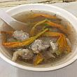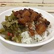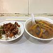 観光客の人はメニューを指させば大丈夫。魯肉飯25元、魚丸湯(魚団子スープ)と貢丸湯(肉団子スープ)は各20元。金針赤肉焿(カンゾウ花と肉天婦羅のとろみスープ)と香茹赤肉焿(シイタケと肉天婦羅のとろみスープ)は、各40元。魯肉はごらんのとおり、トロトロで、酸菜も欠かせません。一緒に食べた金針赤肉焿もいい味でした。この2品で、大満足の朝食となりました。と、ナビはこの日魯肉飯弁当(55元)も買って帰りました。お弁当はおかずが3種、好きなものを選べます。また魯肉を選ばず、おかずの横にある揚げ物などをメインにして、煮卵などをお好みで選ぶことも可(合計料金は選んだもので異なります)。これぞ台湾。を味わいたい方、ぜひ訪れてみてくださいね。