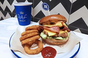 ファーストフード店のようにテイクアウト利用のお客さんを想定しているそうなのですが、イートンスペースもあります。内装は既存の朝ご飯屋さんとは一線を画す青や黒、ゴールドを用いたお洒落さがポイント。それもそのはず、オーナーのKAIさんは現在でこそ複数の飲食店を経営していますが、元デザイナー。店内の随所にクジラのイラストが飾られているのは、店名の「餵我(私に食べさせて)」という言葉の発音が英語の「ホエール」に似ているから。そんな独特な世界観も表現されています。