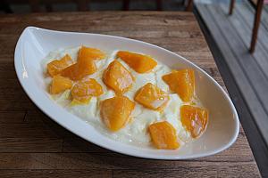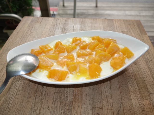 さて、ナビが食べたのは、芒果燉奶140元。ミルクプリンの上に乗っかっているのは甘いマンゴー。マンゴーとミルクプリンを一緒に食べると、おいしさ倍増!以前お店で大人気の一品だった彩虹水果燉奶1は、現在メニューから外れました。フレッシュ感を大切にしているので、秋口になるとマンゴ-はなくなり、いちごに変わります~。