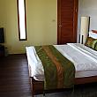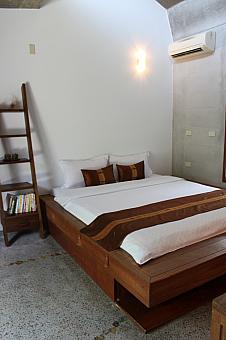 田圃の中にポツンと建っている民宿。宜蘭独特の建築様式を保ちながら、個人の別荘のような雰囲気も兼ね備えています。コンクリートのグレーと濃い目の木材、中庭や庭園の緑などのマッチンングが絶妙で、スイートホーム的なインパクトも受けます。全室4室で、どの部屋もシンプルにまとまっています。ナビが面白いなと思ったのは天井の構造と床。一階建ての建物の天井はかなり高く、その天井近くに窓があるおかげで風通しがとてもよいのです。また、床はコンクリートの割れ目に花蓮の玉石を埋め込み、おしゃれなインテリアの一部を成しています。
