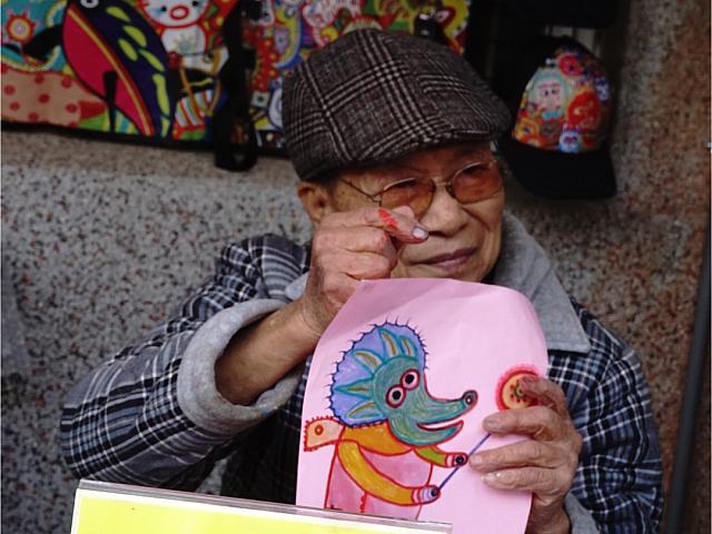 そんな再開発計画の話がでていた2008年のある日、黄じいさんは、突然、ペンキで家の前の灰色のコンクリート壁に絵を描き始めたのです。なぜ描いたの?と聞くと、「退屈だったから。」と答える黄じいさん。絵を描くことを習ったわけでもないので、思いついた絵柄をそのまま描き続けていったそうです。人物、水牛、小鳥に飛行機、はたまたそのころ台北の動物園へやってきたパンダの「圑圑」と「圓圓」も。絵のほかにはおめでたい言葉や風刺も。さて、その黄じいさんはどこに?この手書きの看板、お店でもあるの?と思いながら細い路地に入っていくと、住宅が窮屈に並んで建っています。