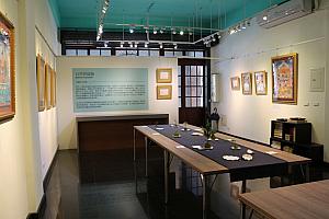 迪化街の中ほど、通称中北街にあるのが「聯藝埕」とほぼ同時期にオープンした「學藝埕」です。ギャラリー&イベントスペースがメインのここは、工芸と美学がテーマとなっていて、展示・講習会などが行なわれています。ショップ・レストラン・カフェ等がいっぱい詰まった他の系列「○藝埕」(小藝埕、民藝埕・・・など)とはちょっと異なる雰囲気。とはいえ、古い町家(街屋)をリノベーションしたスタイルは顕在!気軽に立ち寄って展示作品を眺めるだけでなく、迪化街の代表的な伝統建造物の建築美もまた楽しみたいですね。こちらも天井(ティェンジン)と呼ばれる中庭で進(ひとつひとつのスペース)がつながった三進式の建造物です。ただし、現時点では真ん中の進(二進)はオフィスとして使用されているため見学はできません。公開されているのは一進のみ。 取材時は絵画と盆栽の展示・販売が行なわれていましたが、通常、展示は不定期で更新とのこと。日本からの作品が紹介されていることもあるそうですよ。 今後はおよそ半分のスペースを陶磁器のショップにする予定だとか。それに伴い「民藝埕」の「陶一進」「陶二進」と併せ、マイナーチェンジを行なう予定です。これからの進化が楽しみですね!
