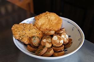 ころんとしたフォルムの煎餅「小圓煎餅」はその名前の通り、こぶりで食べやすく、しかもサックリとしているのに、固くない!歯が弱いナビもどんどん食べ進められます。杏仁、パンプキンシード、ピーナッツの3種類。ナッツ系がたくさん入った薄い煎餅「脆片」シリーズはミックスナッツ、パンプキンシード、杏仁、ソバ&ピーナッツの4種類。これらはしっとりとしているのに、パリっともしています。