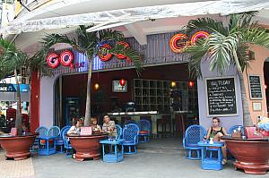 ホーチミンのバックパッカー街、デタム通りとブイビエン通りの交差点で派手派手しくひときわ目立っているBAR。南国ムード溢れる陽気な感じが楽しいお店。24時間営業で朝からサイゴンビールを飲む陽気な欧米人客の姿も。お店の中へ入ると、ビリヤード台も置いてあります。賑やかな場所ながら道も広く、とっても分かりやすい場所にあるので待ち合わせ場所としても使えます。旅行者の強い味方、24時間営業、年中無休です☆