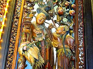 世界遺産の中心を走るチャンフー通りをひたすら真っ直ぐ進むと見えてくる閑静な道沿いに建つ會館。1776年に中国人が建てたと言われており、現在も華僑が集会を開く場所となっています。奥の祠堂には木彫りの額が飾られていて、下部は海、中部は地上、上部は天界を現しています。また日本髪を結った中国人女性の人形彫りにも注目。