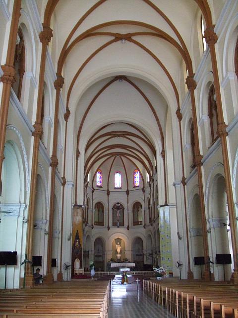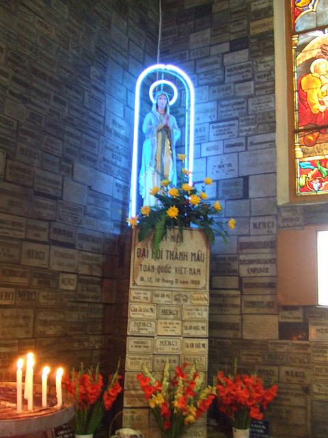 教会の前の広場には聖母マリア像が建てられています。朝早くから、像の前でお祈りをささげる人が後を絶ちません。数年前には聖母マリア像が涙を流したということで、大きな人だかりが毎日のようにできていました。ドンコイ通りに向かわれる聖母マリア像は本当に美しくいつまでも目を向けていたくなります。