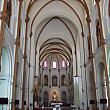 教会は赤レンガを積んでできています。天井は高く、丸いアーチ状になって静かで涼やかな時が流れます。奥行きは100メートル近く。現在、教会内は通常の見学者の場合、奥まで入ることができなくなっていますが、教会の厳かな雰囲気や美しいステンドグラスは必見。細部までこだわったステンドグラスはうっとりと見とれてしまうほどです。上記の記事は取材時点の情報を元に作成しています。スポット(お店)の都合や現地事情により、現在とは記事の内容が異なる可能性がありますので、ご了承ください。