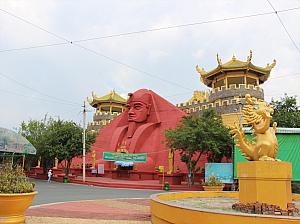 ホーチミンから車で90分ほど走ったところにあるビンジュン省。最近はイオンや高層マンションができて都市開発が進んでいるエリア。ダイナム公園は広大な敷地内で、中国の李朝時代をイメージした建物がうかがえます。黄金の仏像や庭園などを自転車に乗って見学することができ、それ以外にもジェットコースターやお化け屋敷といったアトラクション、ダチョウ乗り体験や希少種ホワイトタイガーを見ることができます。